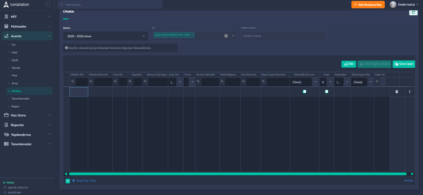 AnasayfaBilgi BankasıAcente ModülüAcente / Otobüs
