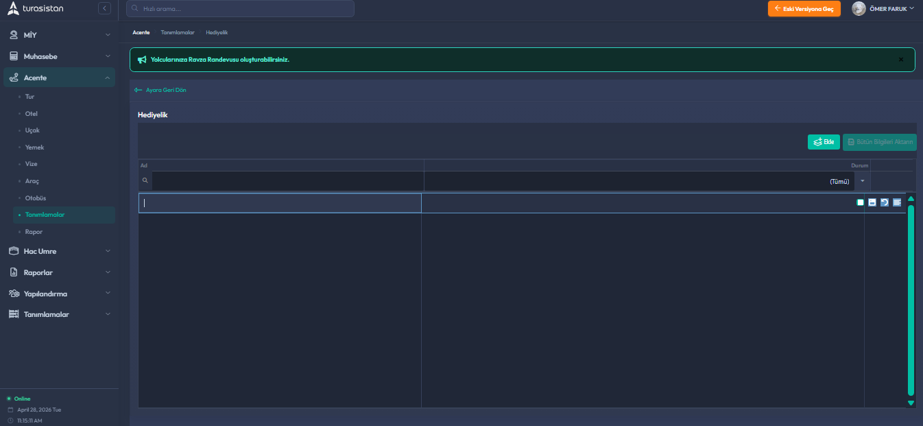 ACENTE/TANIMLAMALAR/HEDİYELİK