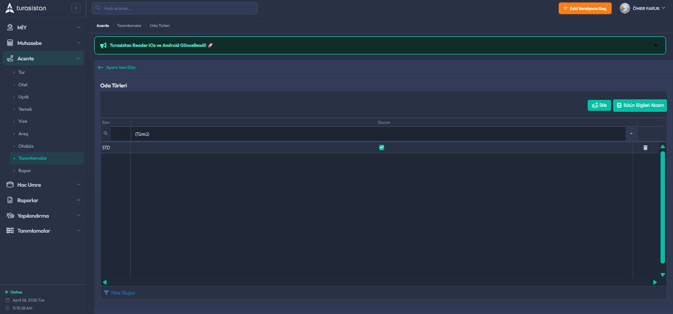 ACENTE/TANIMLAMALAR/ODA TÜRLERİ