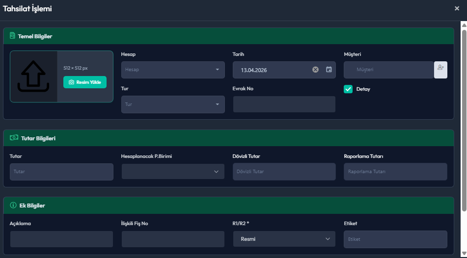 Açıklama: Yapılan tahsilat ile ilgili detaylı açıklama girebilirsiniz.